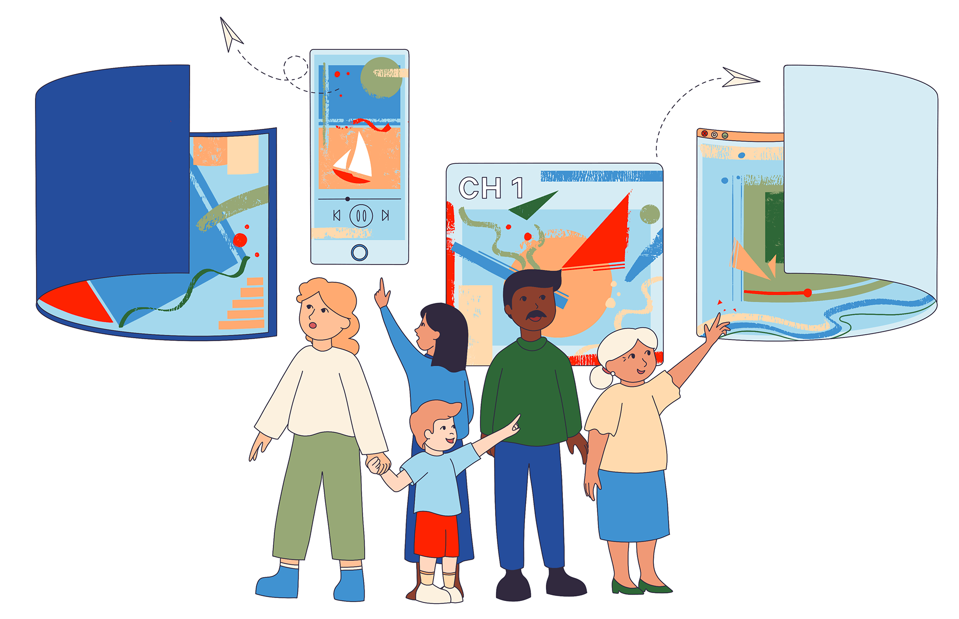 Featuring artwork for an animated splash page and each of the categories Redboat creates animations for - Government, Science & Marketing.